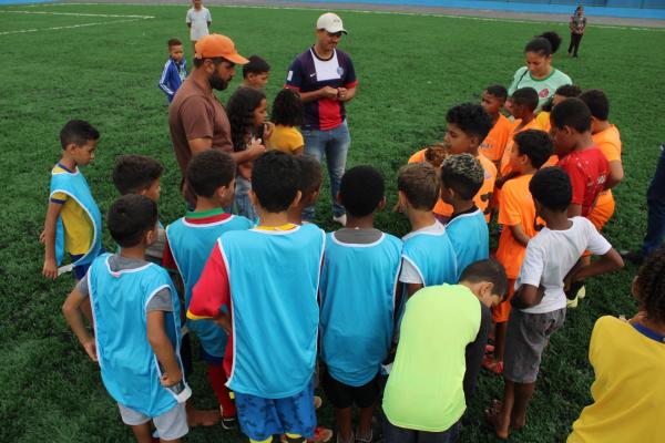 Jovens da rede municipal frequentam e jogam pela primeira vez em campo gramado do Estádio Municipal de Iraquara
