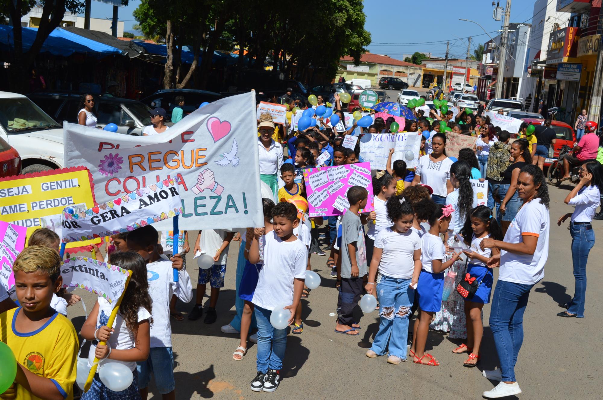 A Escola Integral Integrada Prof. Nilda Maria Carvalho realizou nesta segunda-feira (13) a Caminhada da Gentileza.