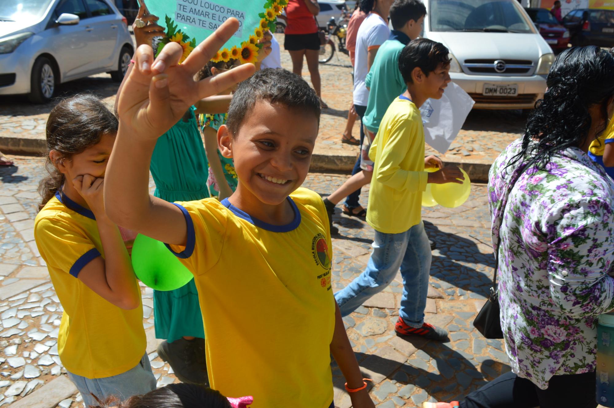 Durante a caminhada, os alunos expressaram gestos de gentileza à população e, entregaram lembranças, para conscientizar a todos sobre o bem de ser gentil como próximo.