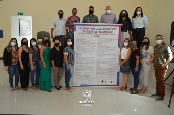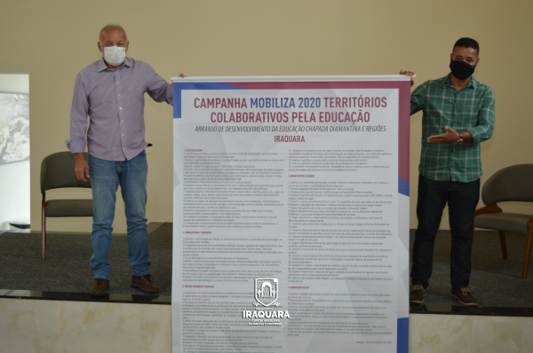 Nesta quarta-feira, 27 de Outubro, no auditório Guilhermino Novaes, a Prefeitura de Iraquara através do prefeito Nino Coutinho, o vice-prefeito Oziel Lelis e a equipe da Secretaria de Educação, receberam das mãos da diretora de Relações Institucionais do ICEP, Fernanda Novaes, e Reinaldo Vieira, responsável pela articulação do Mobiliza pela Educação nos municípios, o banner com as propostas dos municípios que participaram da campanha em 2020.