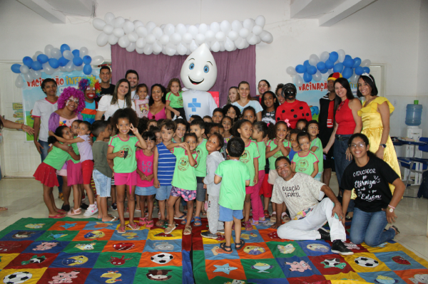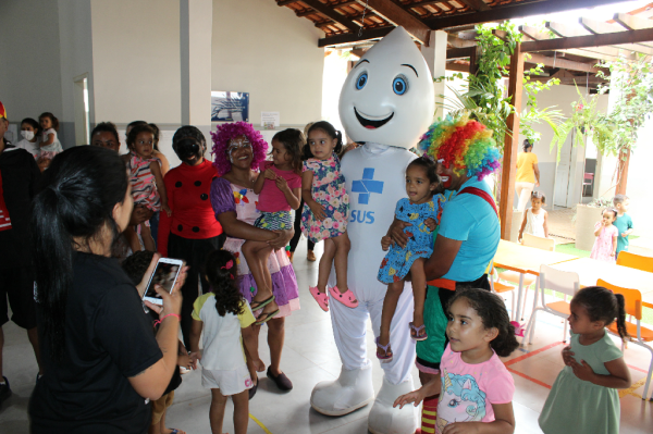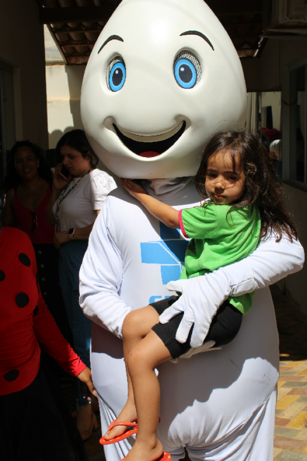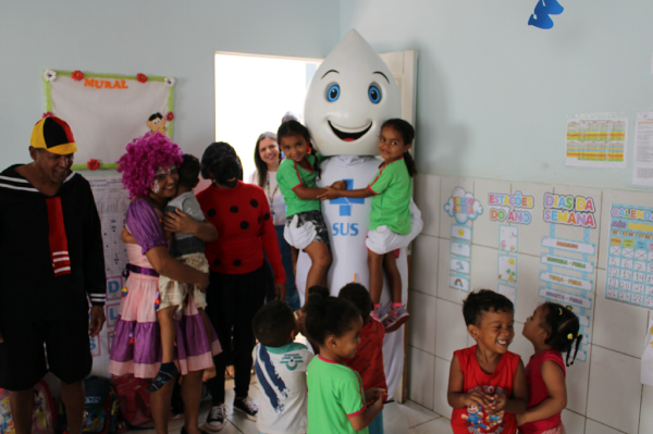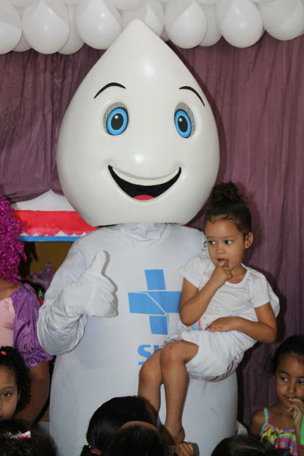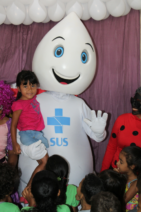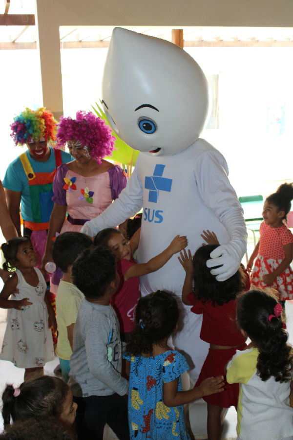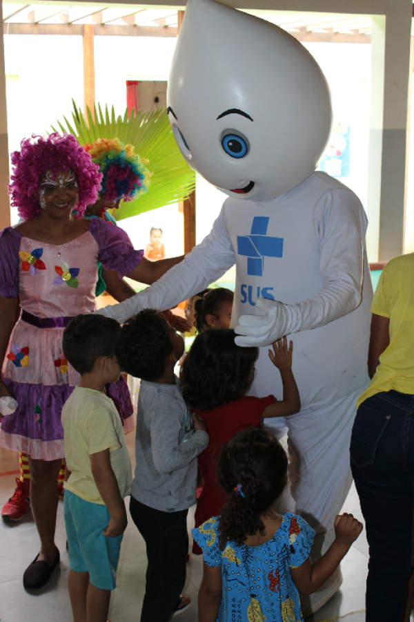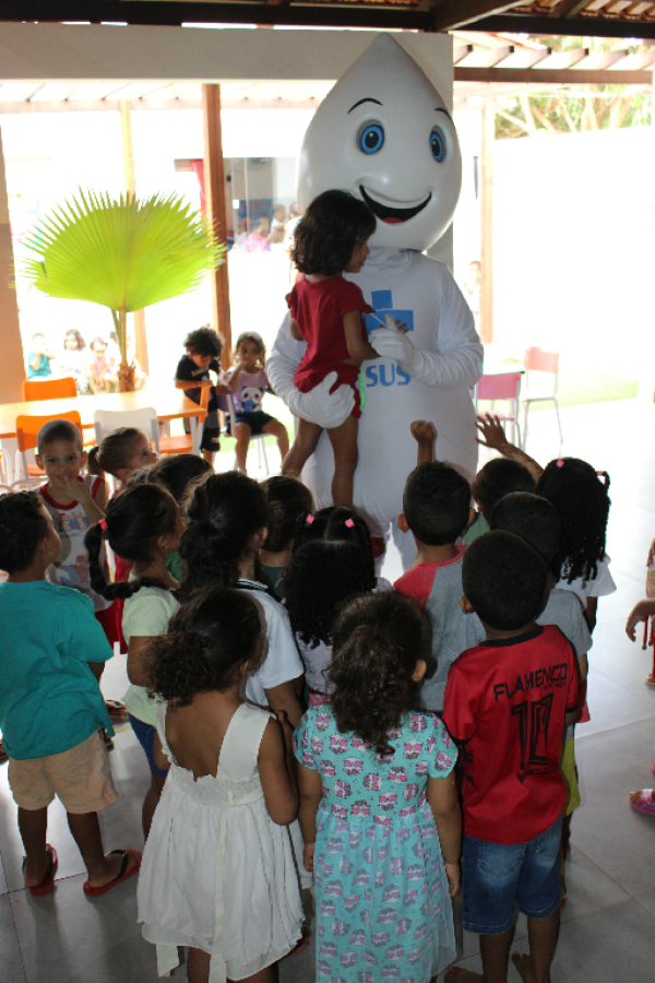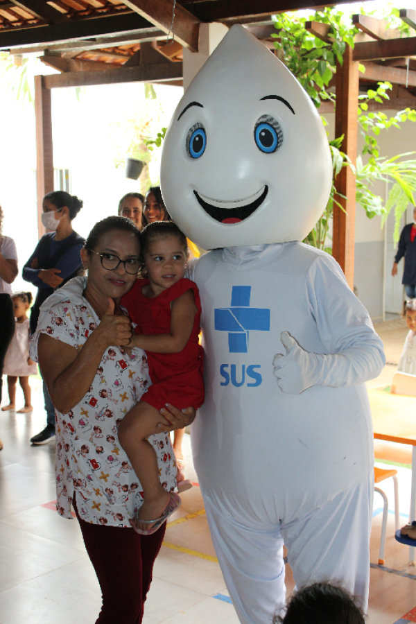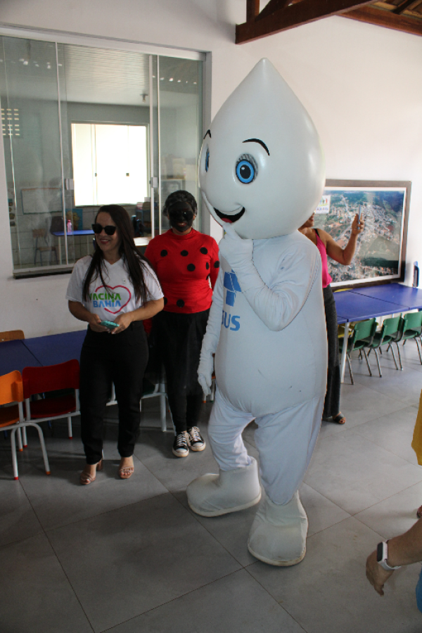 O personagem visitou escolas e Unidades de Saúde e fez a festa da criançada, além de incentivar a participação dos jovens e responsáveis para a importância de manter a caderneta de vacinação em dias.